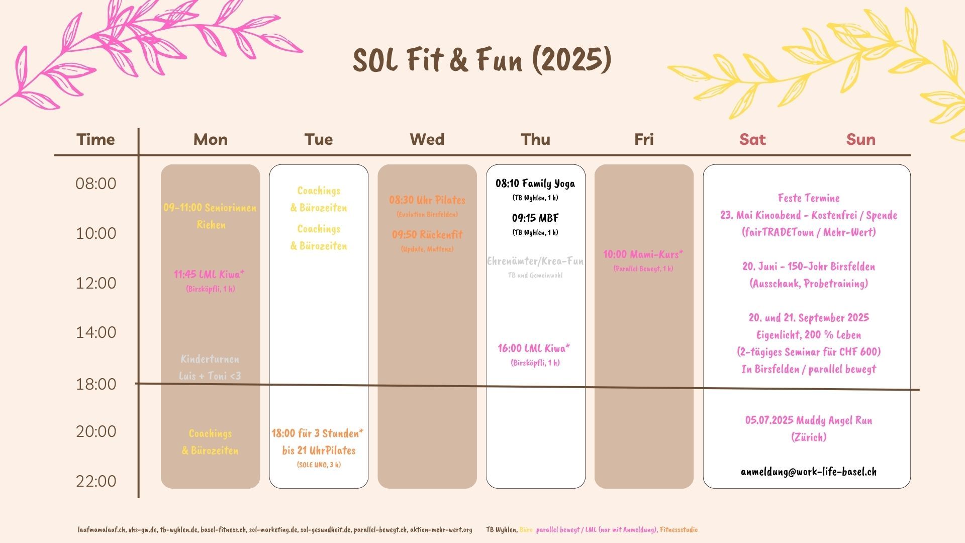 Alle Kurse und Seminare sind mit Anmeldung, die Preise sind je nach Ort und Inhalt vollkommen unterschiedlich, auch was die Infrastruktur betrifft. Aber meine direkten Kontaktdaten habt ihr ja ebenfalls auf dem Stundenplan.